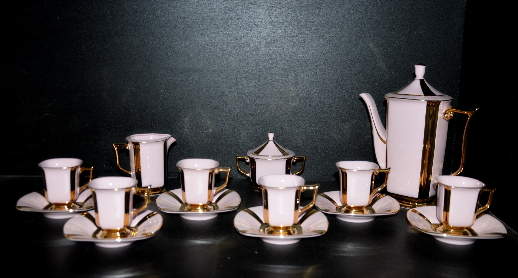 Coffee set Empire, pink porcelain. - Leander Loučky