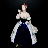 Naglazurová dekorac. Selected portions of the glazed porcelain product surface are coated with cobalt glaze. After the subsequent firing, the decoration is finished with a painting on the glaze colors, which depict the details of the figure. For porcelain figures with human motives, body parts are painted with body color, and figures are often richly gilded. For decorative or decorative porcelain products, the painting of one-color or varied floral motifs is typical.